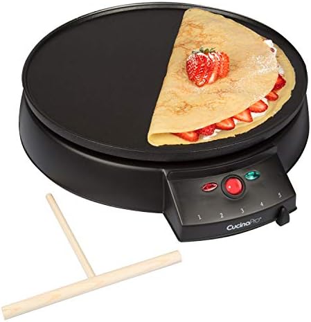 Making crepes has never been so quick and easy. Simply plug the crepe maker in to let it heat up, spread a thin layer of batter and watch it cooks in seconds. Our electric Griddle and Crepe maker has a 12 inch diameter surface, ideal for traditional French crepes. Features a non-stick aluminum plate and 5 different temperature settings. Batter spreader included.