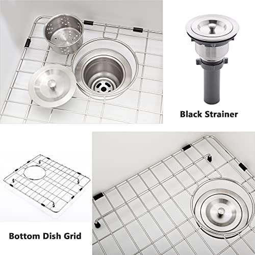 Package Include: White Kitchen Sink Undermount, 3.5″ Standard Drain with 3 Piece Basket Strainer Set keeps debris from clogging the drain pipe, Bottom Dish Grid can prevent sink surface scratch and drying.