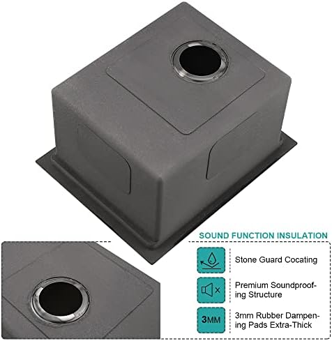 【Noise Cessation & Moisture Barrier】 The stainless steel sink is equipped with a soundproofing system including a protective coating and extra-thick rubber pads to muffle the tinny sounds of running water or echo of dropped dishware, never bothering your conversation with your family. The exterior is sprayed with our specially formulated anti-condensation compound to prevent water condensation.