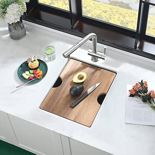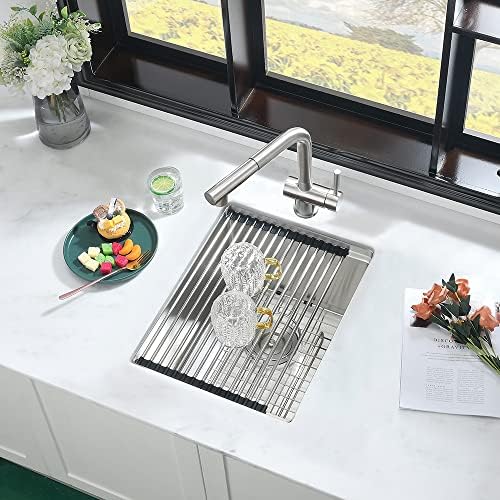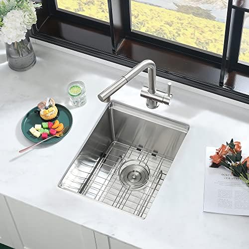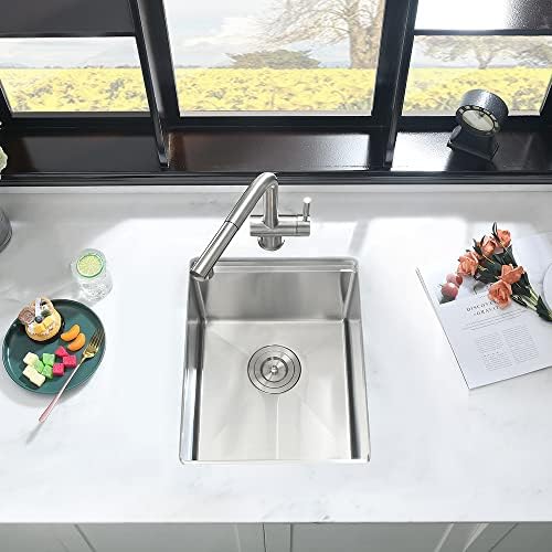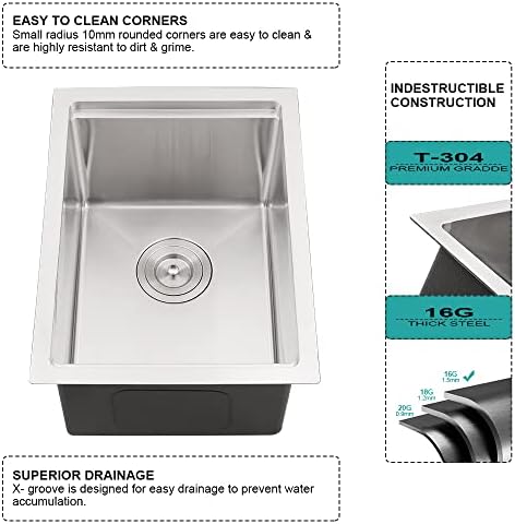 【Tru16-Gauge Stainless Steel & T304 Construction】Built to last with real 16 gauge stainless steel and Extra-tough T304 construction on the market that offers exceptional resistance to corrosion and rust, virtually indestructible. The surface of the sink is treated with high-tech satin nickel, which is non-sticky and will not be scratched. It can be cleaned with a light rub.