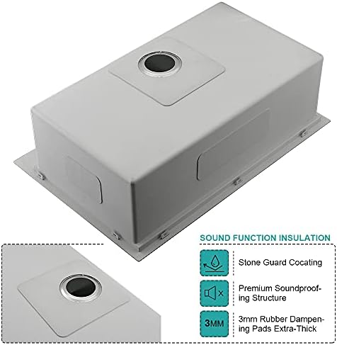 【Noise Cessation & Moisture Barrier】All topmount kitchen sinks are equipped with a soundproofing system including a protective coating and extra-thick rubber pads to muffle the tinny sounds of running water or echo of dropped dishware, never bothering your conversation with your family. The exterior is sprayed with our specially formulated anti-condensation compound to prevent water condensation.