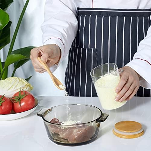 🍬 Practical Design: Each glass jar comes with an individual bamboo spoon attached to the front, making it easy to scoop up and serve your favorite ingredients. The wall of the glass also features a small loop handle for easy gripping during use and the ability to hold the spoon.
