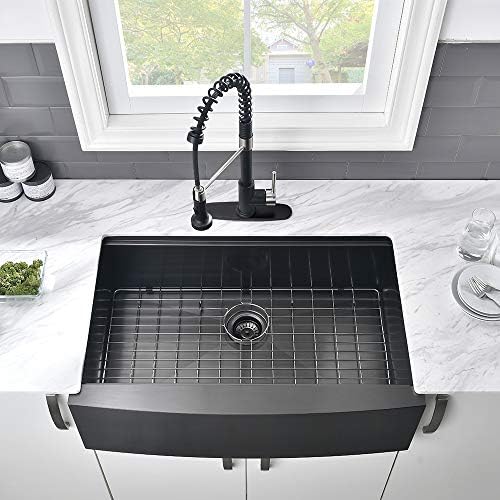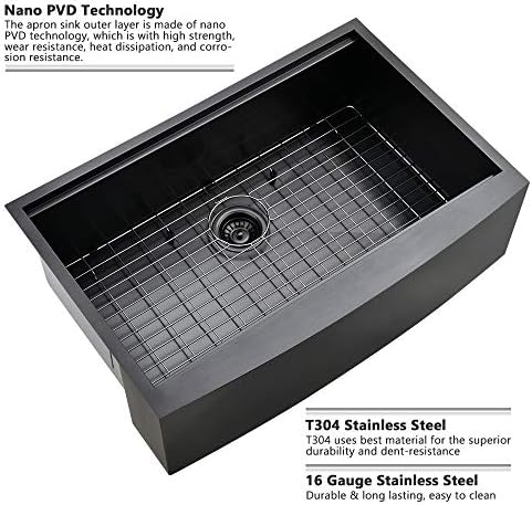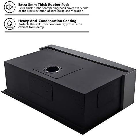 Multiple Functional: The farmhouse sink 33 with heavy duty sound guard and softer rubber noise reduction padding to absorb vibration and minimize noise when the sink is in use. Anti-condensation Thickening Noise Reduction Coating, absorb sound from the SOURCE, and isolate condensate. 10 Inch Deep bowls offer a curved corner for easy cleaning and accommodating your largest roasting pan and more. Sloped bottom and X grooves design that it is easy to drain, keeping your farm sink clean.