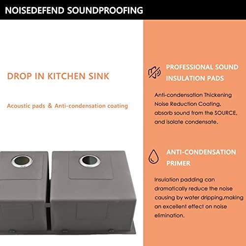 【More Features】: This drop in matte black stainless steel sink depth is 10 inches, which is enough to hold most kitchen utensils. R10 angle expansion design increases capacity,Increase sink space cleaning.Easy to clean and long-lasting.Handmade X flume design,not only increase the design aesthetic but also easy to drain water in a minute.Insulation padding can dramatically reduce the noise causing by water dripping,making an excellent effect on noise elimination