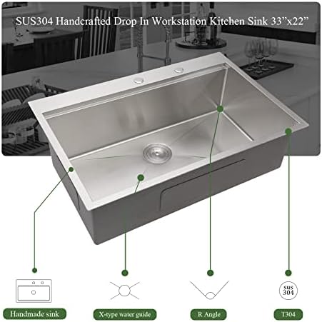 HEAVY-DUTY 16-GAUGE STAINLESS STEEL ––Made of premium heavy-duty TRU 16 Gauge SUS304 grade stainless steel, the 33 drop kitchen sink is highly resistant to dents and scratches, corrosion resistant and long lasting, easy to clean.