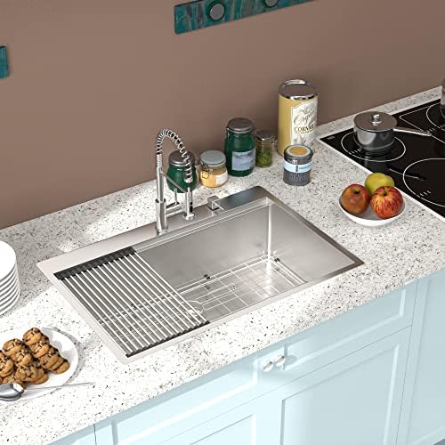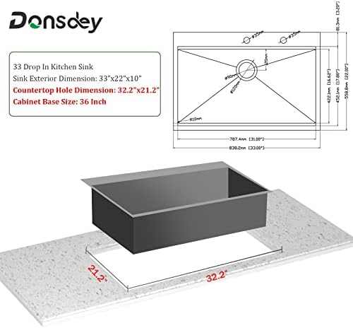 33 Kitchen Sink Drop In – Donsdey 33 Inch Kitchen Sink Ledge Workstation 16 Gauge Stainless Steel Drop In Topmount Single Bowl Rectangular Kitchen Sink Basin