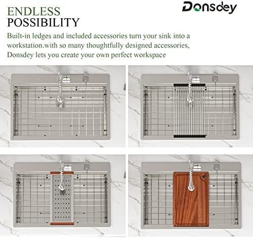 100% SHOPPING GUARANTEE ––Lifetime limited warranty, Hassle-free returns and refunds within 90 days – DONSDEY 33 inch drop workstation kitchen sink.