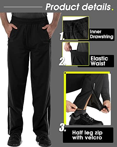 Convenient Design: This rain pants men waterproof lightweight features half leg zip and velcro closure with reflective riping slit that allows expand the width of the ankle cuff to accommodate over boots, keep your shoes dry.