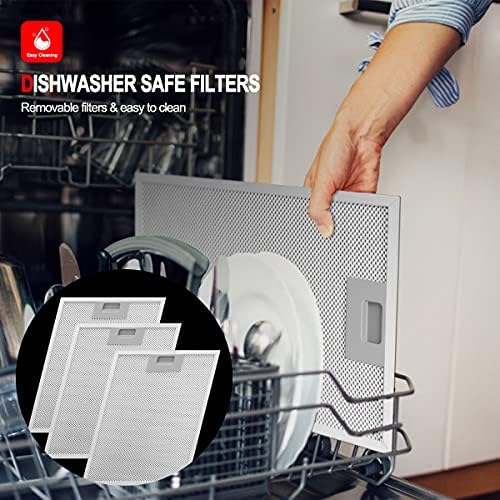 This 30 inch range hood features a pieces of removable 5-layer durable non-stick aluminum mesh filters, making it totally easy to maintain and clean.