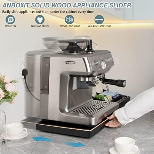 ANBOXIT Appliance Slider, Wooden Sliding Tray for Coffee Maker, Coffee Pot Slider for Counter, Kitchen Caddy Rolling Tray – Wide