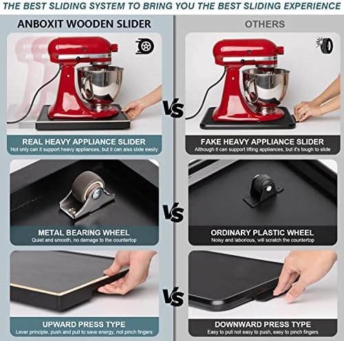 【Stop scratching the countertop】 Our sliding tray uses better quality wheels. Wide and sturdy, not only is it covered in soft plastic, but it also has silent bearings built in. Even with very heavy appliances, you can slide it effortlessly and smoothly without leaving any scratches on the countertop.