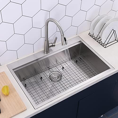 The 33 drop in sink is made of dent-resistant T304 stainless steel superior strength and durability. The brushed nickel finish will no water trace left, very easy to clean, anti-freezing heat and non-seepage water , long lasting and durability.
