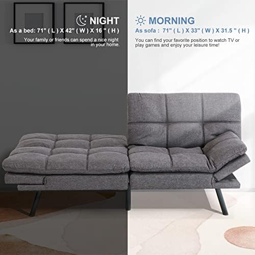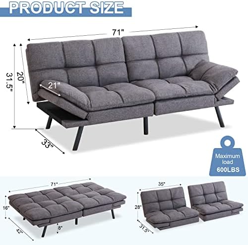 MUUEGM Futon Sofa Bed Couch Memory Foam Futon Bed,Modern Sofas for Living Room,Convertible Sleeper Sofa w/Removable Armrests,Love Seat for Compact Living Spaces Offices Dorm Bonus Room,Linen,Grey