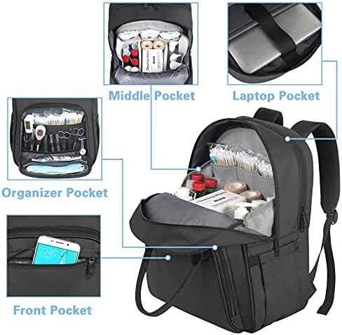 👩‍⚕️Application: Perfect design for medical nurses. With removeable organizer in spacious packing compartment, this Clinical Bag offers you a more convenient way to organize your clinical medical supplies, laptops, ipad. It’s a great backpack for personal clinical research, family health care service personnel, emergency personnel conduct home visits and first aid in daily work