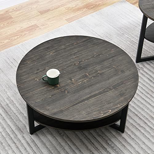 ENOUGH STORAGE COFFEE TABLE: Round coffee table features 2-tier of shelf for display. The round table top is 35.3” Dia x 17.8”H, which provides spacious space for living room, The dia of bottom shelf is 28.9”, gives you extra space to store magazines and toys, and make your room tidy and neat. And also, this distinctive design provides highlights for your home.
