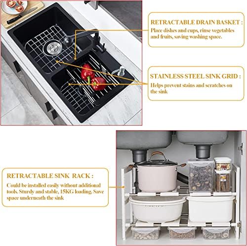 X-shaped Design: X-shape water guiding line at the bottom of the black kitchen sink direct water toward drain faster to prevent blockage. The sink will drains nicely with no water pooled in the corners. It will be the best part of your kitchen.