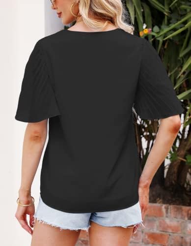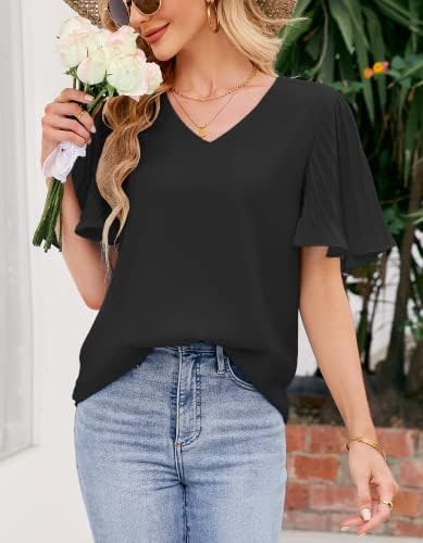 🌷Your every step is accompanied by the enchanting sway of the ethereal flutter sleeves! The blouses for women feature delicate, pleated ruffle sleeves that drape gracefully over your arms. In the summer breeze, the fabric of these womens 2023 summer tops gently sways, adding a romantic touch to your look