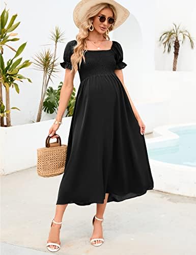 Fabric: This maternity dress is made of mid-weight chiffon fabric with good drape, featuring soft, breathable, skin-friendly, flowy and smooth.