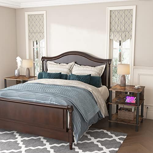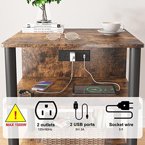 AKAKON End Table with Charge Station-Square Large Side Table with Outlets and USB Ports-Storage Coffee Table for Living Room-Wood 19"x19"x25" (No Drawer)
