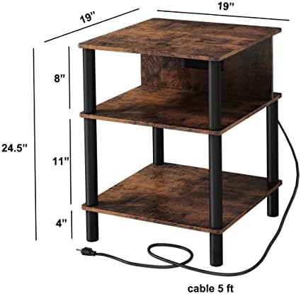 AKAKON End Table with Charge Station-Square Large Side Table with Outlets and USB Ports-Storage Coffee Table for Living Room-Wood 19"x19"x25" (No Drawer)