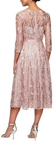 Our fun and flirty embroidered dress with godet skirt detail is a great choice for a mother of the bride, guest of wedding, or special occasion. As a midi length dress with 3/4 illusion sleeves and illusion neckline it provides great coverage while not being stifling.