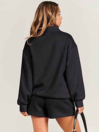 ANRABESS Women 2 Piece Outfits Sweatsuit Oversized Half Zip Collared Sweatshirt & Short Set Lounge Wear Tacksuit Set