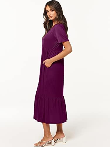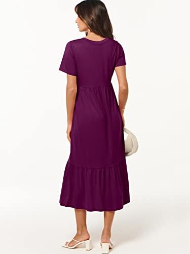 features – short sleeve,V neck,maxi dress,tiered flowy skirt,basic cute beach dress with pockets.