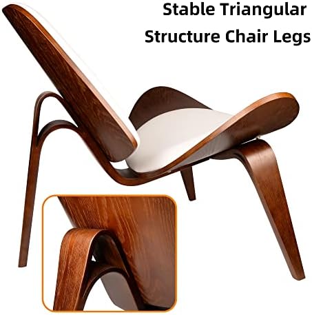 Aoparts Mid Century Modern Shell Lounge Chair, Faux Leather, Scandinavian Furniture Tripod Plywood Classic Design Solid Wood Accent Chairs for Living Room, Reading, Lounge, Office, Salon