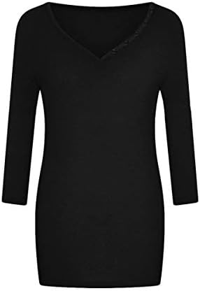 Design:Solid color shirts,with 5 decorative buttons on v neckline,3/4 sleeve,loose fit,casual style,the simple but classic design make you chic all day