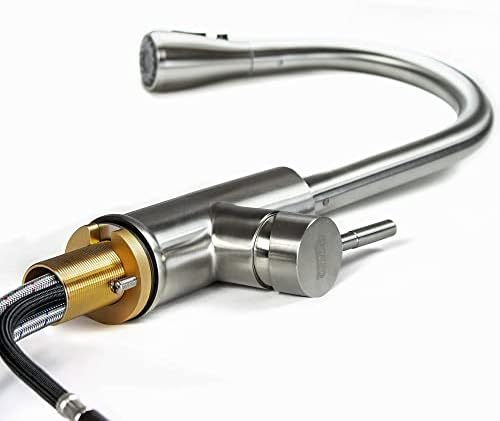 aquo Kitchen Faucet – This Easy to Install 15" Height Sink Faucet Hole Variety Kitchen Countertops, Nicely Preventing Leaking Issue by Brass Kitchen Sink Faucet Inner Hoses Design, Brushed Nickel
