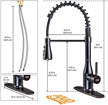 aquo Kitchen Faucet – This Easy to Install 18″ Height Sink Faucet Fits Variety Kitchen Countertops, Nicely Preventing Leaking Issue by Brass Kitchen Sink Faucet Inner Hoses Design (Oil-Rubbed Bronze)