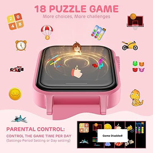 【18 Puzzle Games】The upgraded kids smart watch built-in 18 games,easy entertainment anytime, anywhere. Especially suitable for use as an outdoor travel toys.more challenging games can effectively exercise children’s logical thinking ability and hand-eye coordination ability.Parents can through “PARENTAL CONTROL” control the game time to prevent addiction.It is a perfect gifts for 3-12 year old boys girls.