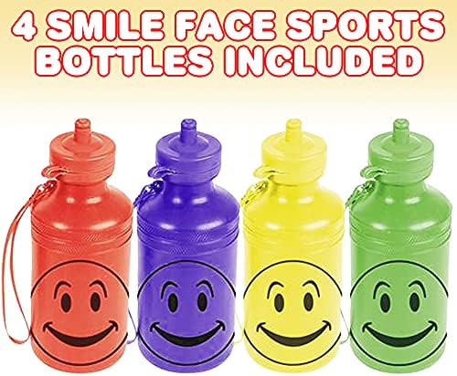 Whether you’re looking for sports party favors for your little one’s birthday party, emoji party supplies, holiday stocking stuffers, or small prizes for that kids’ carnival or contest, these smiley face sports bottles are guaranteed to be a hit! Every set not only comes with 4 water bottles for kids to give you enough to dish around but also a 100% money-back guarantee to give you total peace of mind. Inspire a rush of smiles and giggles without having anything to lose.