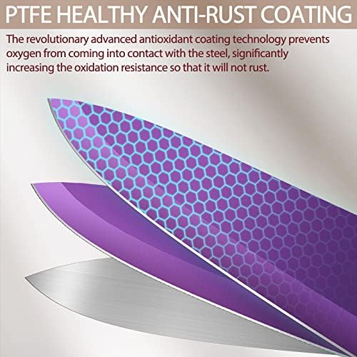 【Dishwasher Safe Knife Set】 The colored coating helps prevent knives from rusting due to direct contact with oxygen. Combined with the non-stick coating, knives stay clean all day long!