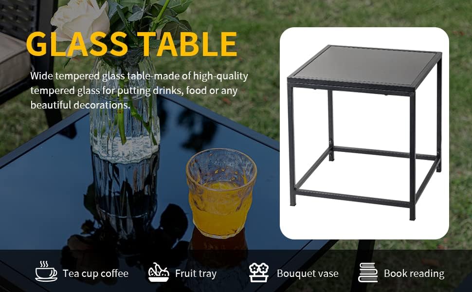 [Wide Usage] The patio furniture will make for a perfect addition to your outdoors, balcony, porch, yard, apartment, and bistro so that you just sit back and enjoy your time. The outdoor conversation set has strong feet to protect your floor and increase the stability of your furniture.