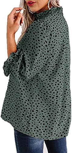 [Feature]: Elegant blouse for women feature with fashion leopard print, 3/4 sleeve with ruffle hem, ruffle neck, keyhole back, frill mock neck shirt