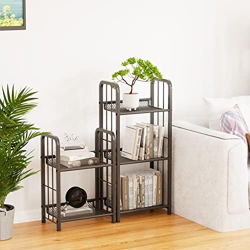 Azheruol Bookshelf Storage Shelf Bookcase Freestanding Storage Stand for Living Room, Bedroom, Kitchen, Rust Resistance, Easy Assemblyl Free Combination Multi-Functional Organizer (3 Tiers, Black)