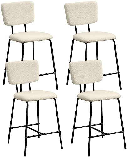 Bar Stools Set of 4 Counter Height Bar Stools : Upholstered Boucle Fabric Bar Stool for Kitchen Bistro Pub Armless Modern Bar Chair with Back and Footrest for Dining Room Counter Island