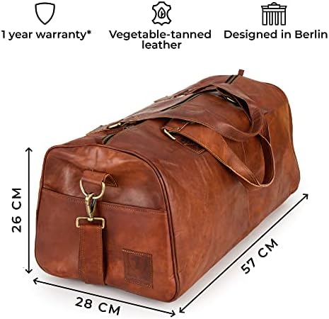 ⭐VINTAGE STYLE. This large travel bag adds retro chic to every situation. The 6 metal feet protect your bag from wear. We only use 100% metal YKK zippers, with stylish Berliner Bags branded pullers. Carry it by its sturdy handles, or sling it over your shoulder with its detachable strap! 🎁 As a special gift we’ve included a genuine leather luggage tag, so you can personalize your bag and keep your belongings safe 🎁
