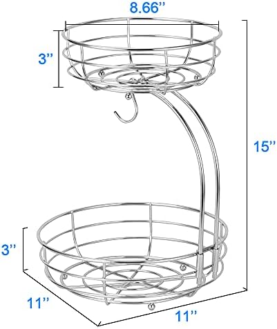 🍑 CONVENIENT TO CLEAN – This 2 tier fruit basket is superior in rustproof and durable performances. So that you can clean the basket by wiping with a soft damp towel easily.