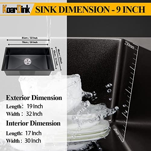 Black Kitchen Sink, Undermount Stainless Steel Bar Sink 32x19x9 Inch Drop In Single Bowl Kitchen Sink With Accessories-Sink Grid,Silicon Faucet Mat,Drain Assembly Set For Modern Kitchen Sink