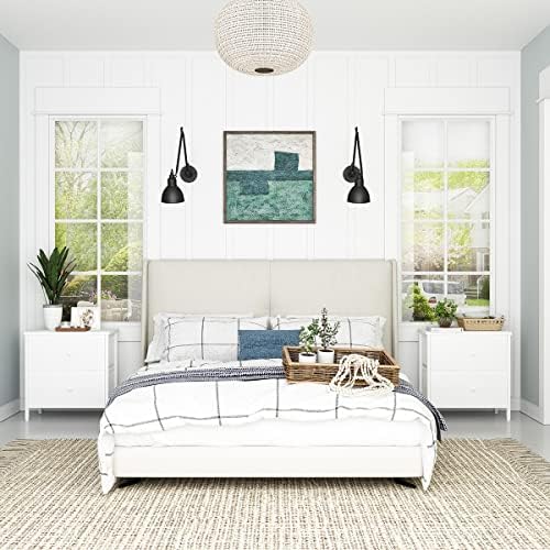 ✔[FABRIC DRAWER WITH WOOD FRONT]: This white night stand has fabric drawers with wood front,elegant look and easy to clean,removable wooden handle.