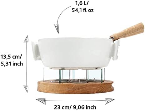 STAINLESS STEEL, OAK WOOD AND CERAMIC: By using oak wood and stainless steel, the fondue set has a modern and rustic look. The ceramic pan is sturdy and even suitable for oven and microwave.