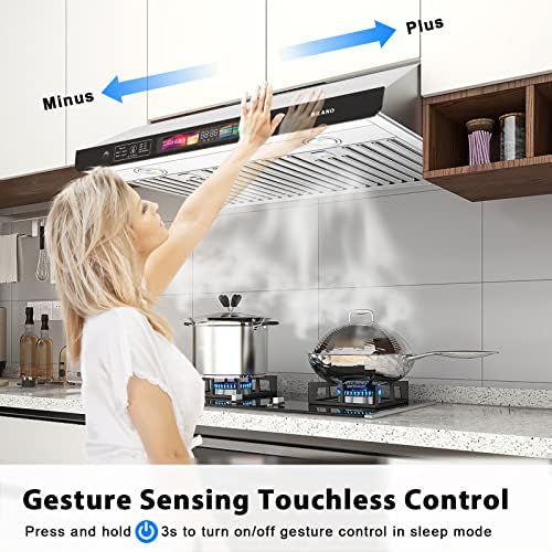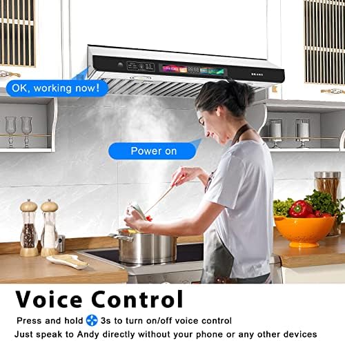 【VOICE CONTROL】: Upgraded voice control range hood allows you to achieve hands free completely. Not need to rely on your phone or other software to drive the voice assistant, just call your cooking partner “Andy” to help you execute the command after the power is plugged in. When you are washing vegetables, you not need to go to touch or hand wave control vent hood to switch functions. It is perfect to save your operation time, you can trust it to work no matter what time to use it.