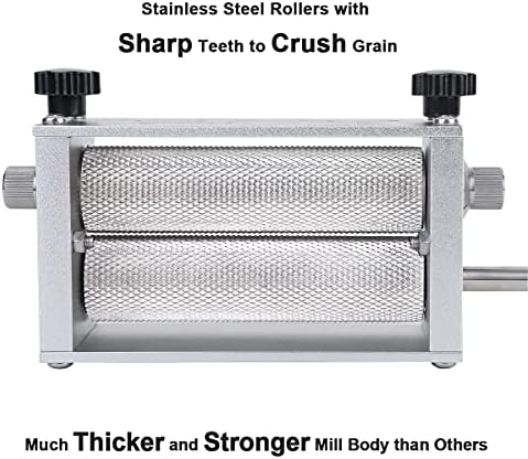 Premium Quality and Exquisite Surface – Brewland grain crusher select 2 high stand 12 TPI knurl stainless steel rollers, anti-corrosion, ensure the long-time use and good flavor of your beer. With a much thicker and stronger mill body structure, no need to worry about the grain grinder deformation. With exquisite hygienic aluminum anodized body and shinning stainless steel rollers, it’s not only a grain mill tool but also a very nice gift for you and your friends