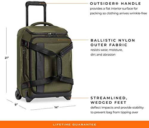 The ZDX 21” Carry-On Wheeled Duffle offers the best of everything, combining the roominess of a duffle with the convenience of a wheeled carry-on. It boasts our patented Outsider handle for a flat, roomier interior, perfect for bulky sports gear or parkas, plus an easy-access pocket to hold items for security checkpoints and an outside battery pocket so you can keep charging your phone as you roll along to your weekend adventure.