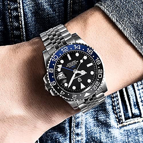 ⌚ Watch material: sapphire synthetic mirror, scratch resistant and relatively smooth. Stainless steel strap is very durable. And with GMT function, the color can easily match any of your clothes. Perfect for daily activities and business activities.