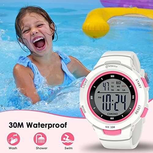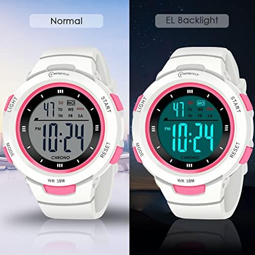 Multi Function:Alarm Clock, Stopwatch, 30M Waterproof, Shockproof, Calendar, EL Backlight, 12H/24H time etc. This sports watch fits perfectly with all kinds of sports and is suitable for all occasions for boys and girls.