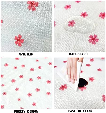 Cherry Blossom Flower Shelf Liner for Kitchen Cabinets Non-Adhesive Drawer Liner Non-Slip Refrigerator Liner Waterproof Fridge Pad Cupboard Mat Easy Placemats, 17.7"X118"