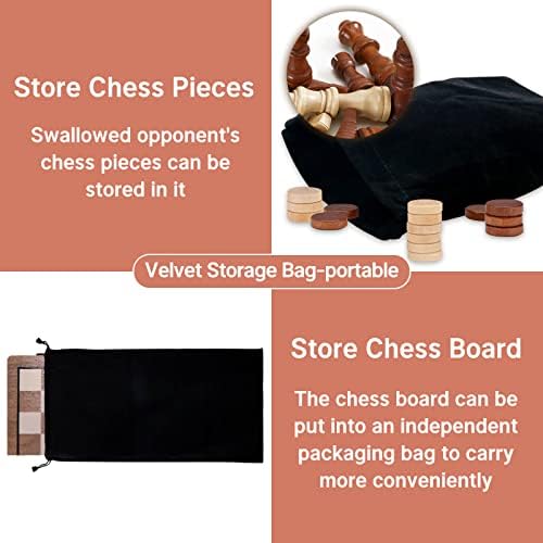 Premium Material: The chess board is handcrafted from premium birch wood with beautiful natural wood grain, all surfaces and corners are carefully sanded smooth and machined for the best feel.